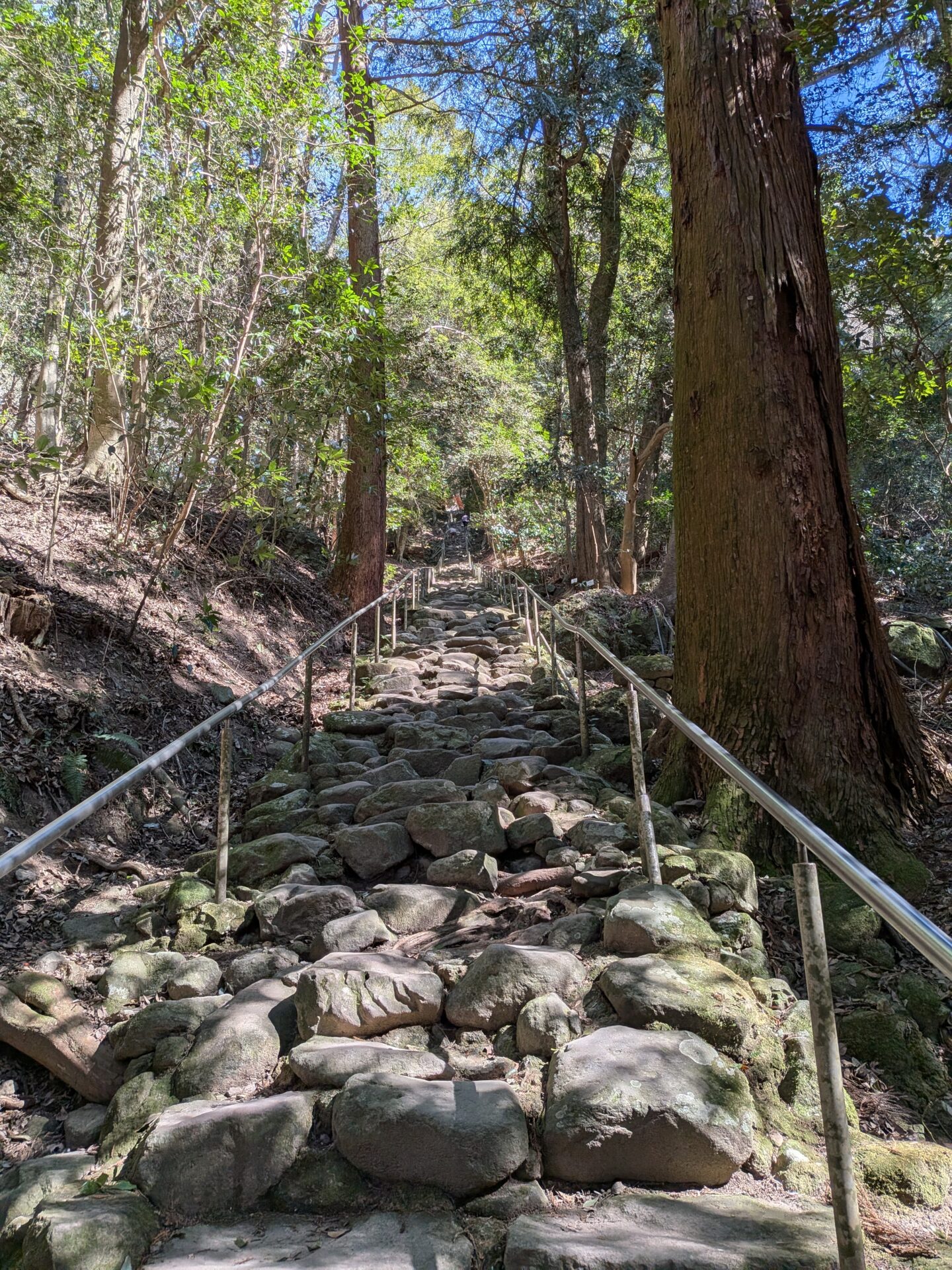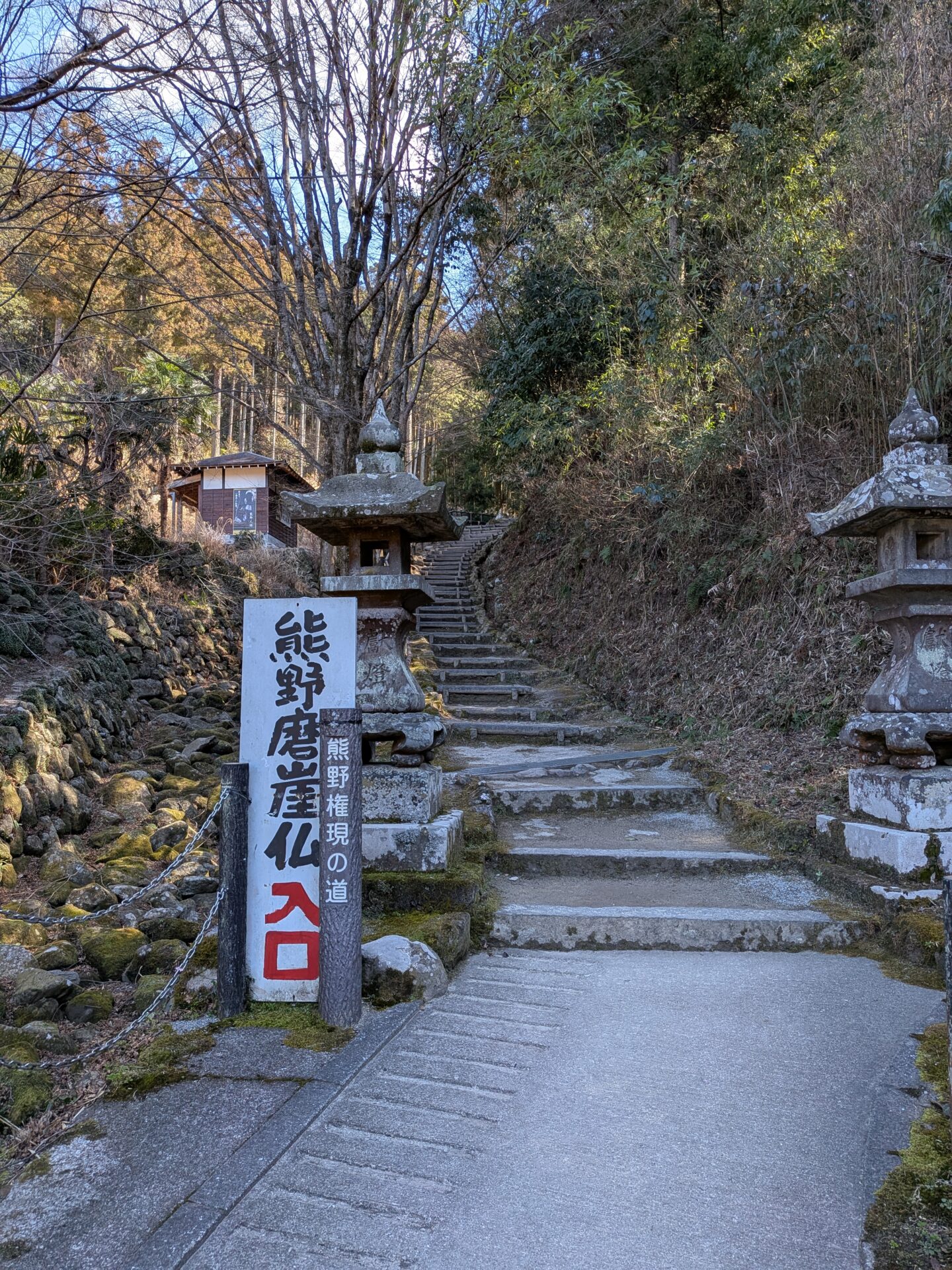 摩崖仏まで結構な距離の石段を歩いていきました。手摺が付いていたので何とか辿り着きました。